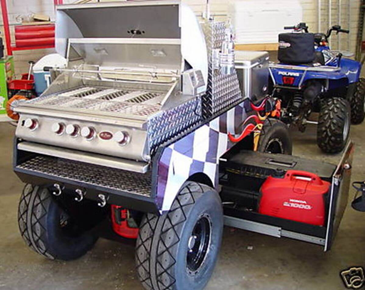 For those who take pride in “propane and propane accessories,” why stop at a mere grill that’ll just getter done? Why not pimp that sumbitch out? Here’s some examples of what a love of grilling and an active imagination can come up with: