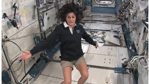 She showed off some of the things we’ve come to expect to see for space stations, exercise equipment so they don’t lose bone mass and muscle tone, and packets of dehydrated food, and snacks and candy. The bathroom also looks like it would take a bit of skill to execute, with its number one function being served by what looks like a lawn hose with a yellow receiver at the end, and the number two function requiring a bit of good aiming.