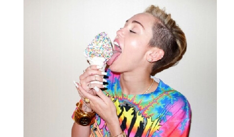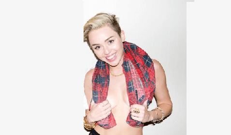 Singer/actress Miley Cryus just can’t seem to keep her clothes on. In a publicity ploy for her new album, Bangerz, released on Tuesday, Cyrus appears topless in a Terry Richardson photo shoot. It doesn’t stop there though and only gets worse. Not only is the pop singer baring her nipples, but she reveals almost all of herself through a sheer outfit choice while humping an Arizona iced tea can. Whether the Arizona iced tea company is happy with this controversial and shocking publicity remains to be seen. She also is depicted smoking a cigarette and a joint at the same time. There’s more – she also makes out with an ice cream cone and continues her trademark of sticking out her tongue at almost everyone and everything. Keep it in your mouth, Miley!