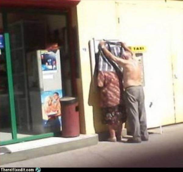 Stupid sun makes reading the ATM impossible. But man is master of the elements, and can outsmart whatever weather is put before him.