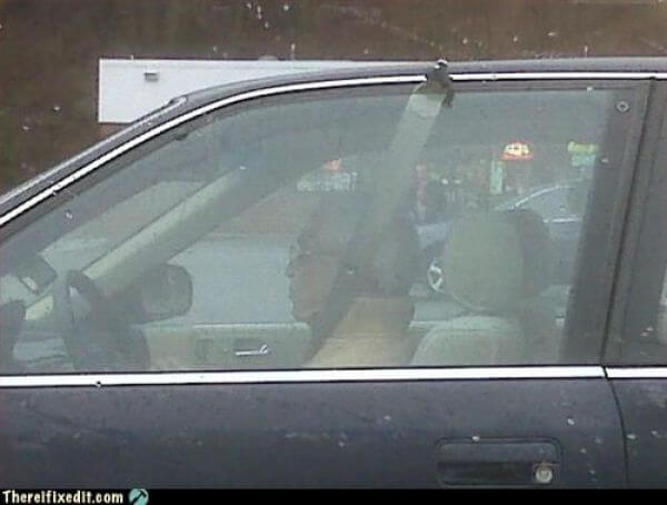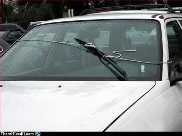 This one takes the cake for ghetto repair: a wiper blade motor that’s broken replaced by two ropes. Certainly driving while wiping the windows using ropes can’t be safe.