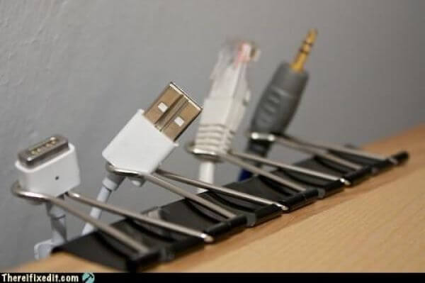 I do this one myself: a great way to keep those cords available, rather than tangled behind the computer.