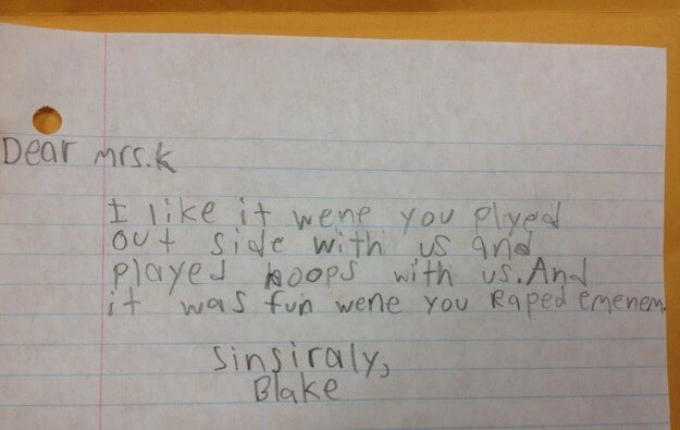 Where does a child this young (judging from the handwriting) get this level of humor?