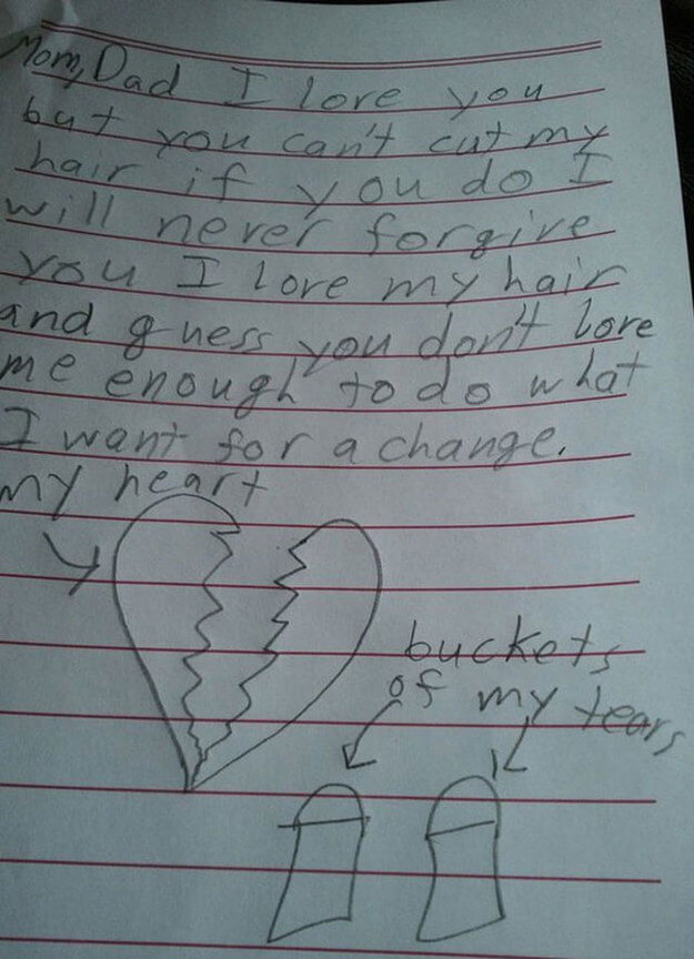 Admittedly, a child has little control over things important to her: this sort of rhetoric is the best she can do to civilly address her griefs.