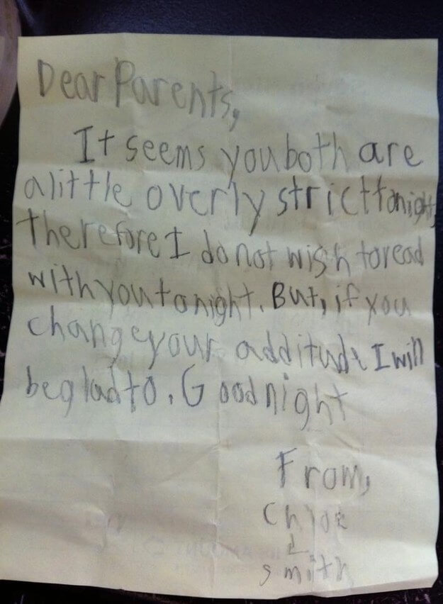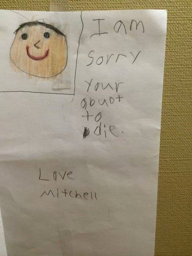 Summary: This series of notes written by kids reveals both their lack of tact and the humor when they nevertheless attempt it.