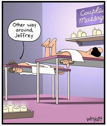 We are struck immediately by some unfortunate divergences in Whyatt’s work: his sexual preoccupations limit the appropriateness of his work for children or the newspaper, and also his tendency to make fashionable pop references will soon enough be out of fashion pop references. Despite these limitations, Whyatt’s comics offer some respite in our Larson longings, and remind us that the art of single panel humor isn’t dead.