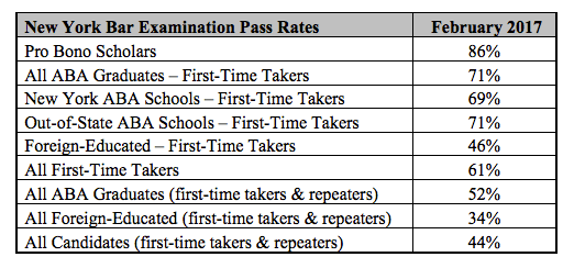 Summary: New York has released the results from its February 2017 bar exam.Â