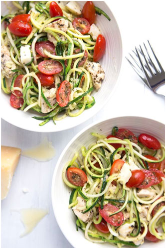With more people focusing on eating gluten free or paleo, finding replacement for their beloved grains, like pasta, has resulted in more creativity in the kitchen. Replacing your pasta with zucchini not only reduces the calories, carbs, and white sugars in a dish, but it also increases the fiber, vitamins, and minerals from the vegetables. If you want to give spiralizing a try, it’s really quite simple. Just find one of the many tools available in your local grocery store, Target, Walmart or Amazon and then use one of the recipes below to give it a go!