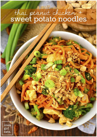 Thai Peanut Chicken and Sweet Potato Noodles from Iowa Girl Eats
